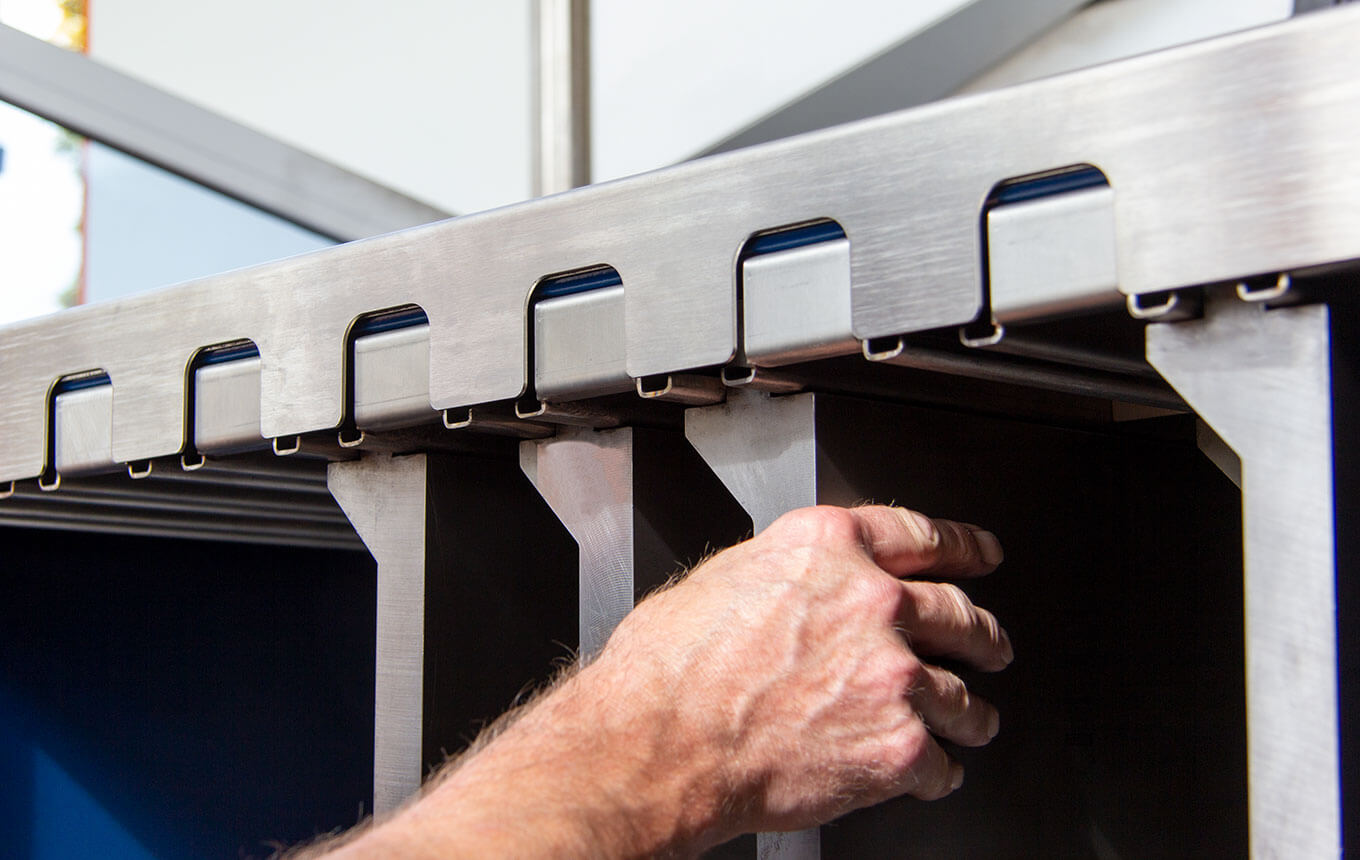 Reduzierung von Werkzeugbeschädigungen durch sichere Aufbewahrung. Ihre wertvollen Werkzeuge werden sicher gegen versehentliches Aneinanderschlagen o.ä. geschützt. Die modifizierten Stempelwerkzeuge ermöglichen zudem ein leichtes Hineingleiten in die Werkzeugaufnahmen der Trumpf-Abkantpresse. Der Verschleiß der Stempelstifte wird dadurch minimiert.